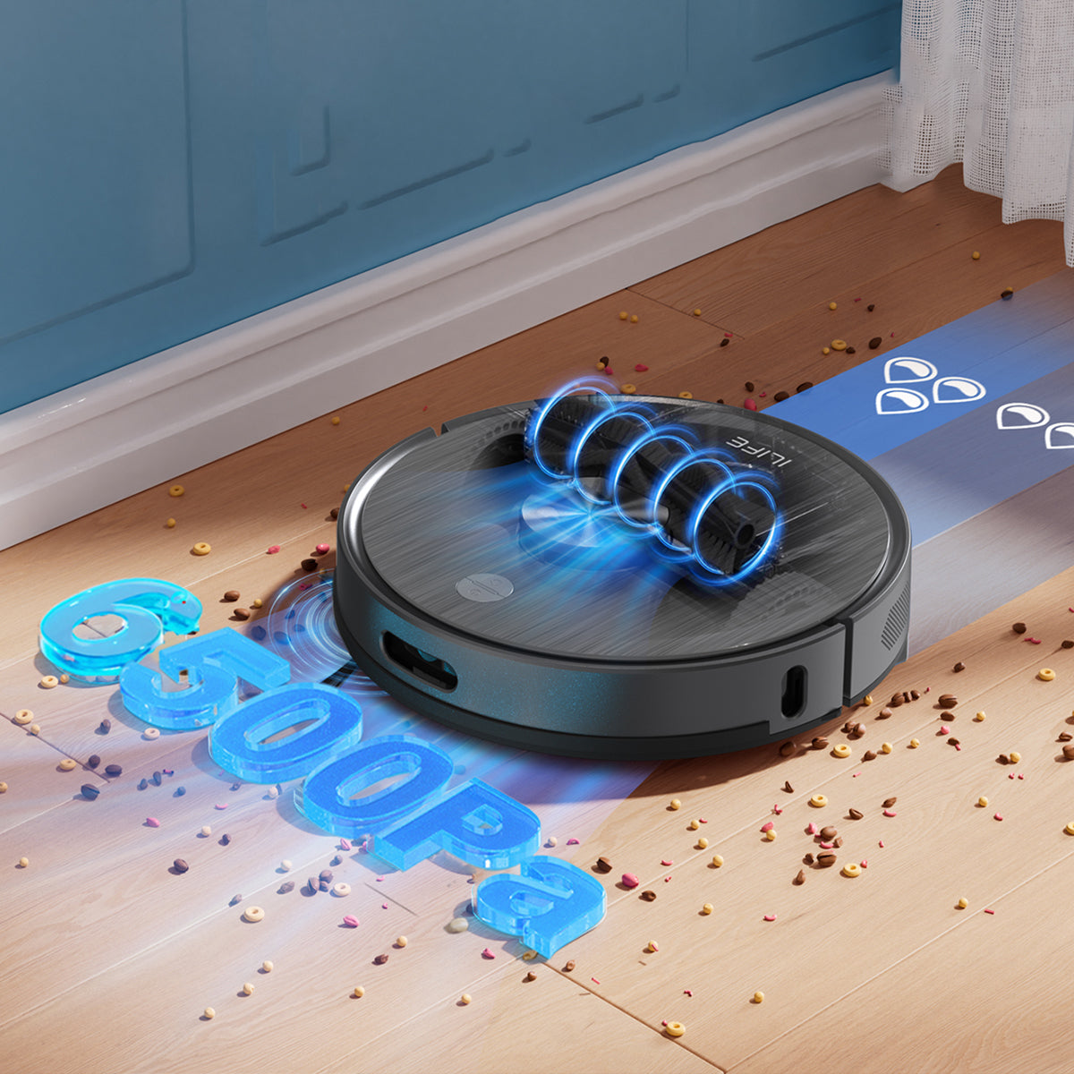 Experience the intense 6500Pa suction power of ILIFE robotic vacuums, designed to tackle deeply embedded dirt and debris from carpets and hard floors alike. With a straight-line vacuuming efficiency of over 90%, it effortlessly handles tough messes, ensuring a thorough and spotless clean every time.