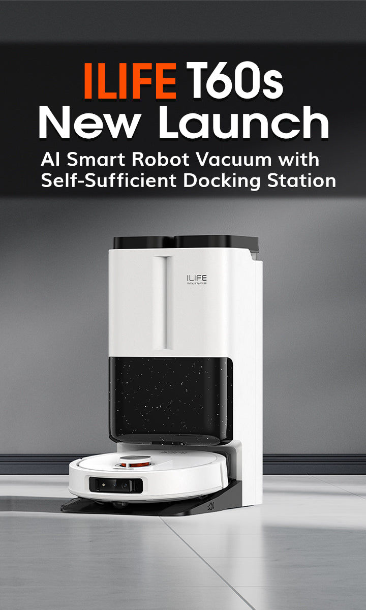 ILIFE T60s Robotic Vacuum Cleaner is a smart, all-in-one cleaning solution powered by AI and LiDAR for precise navigation. This vacuum and mop combo features strong suction, auto mop lift, and a self-emptying dustbin for hands-free cleaning. With self-washing, hot air drying, and a smart mopping system that mimics human movements, it ensures deep, efficient cleaning. Its extendable, liftable mop reaches tight and elevated areas, making it a truly self-sufficient, low-maintenance device