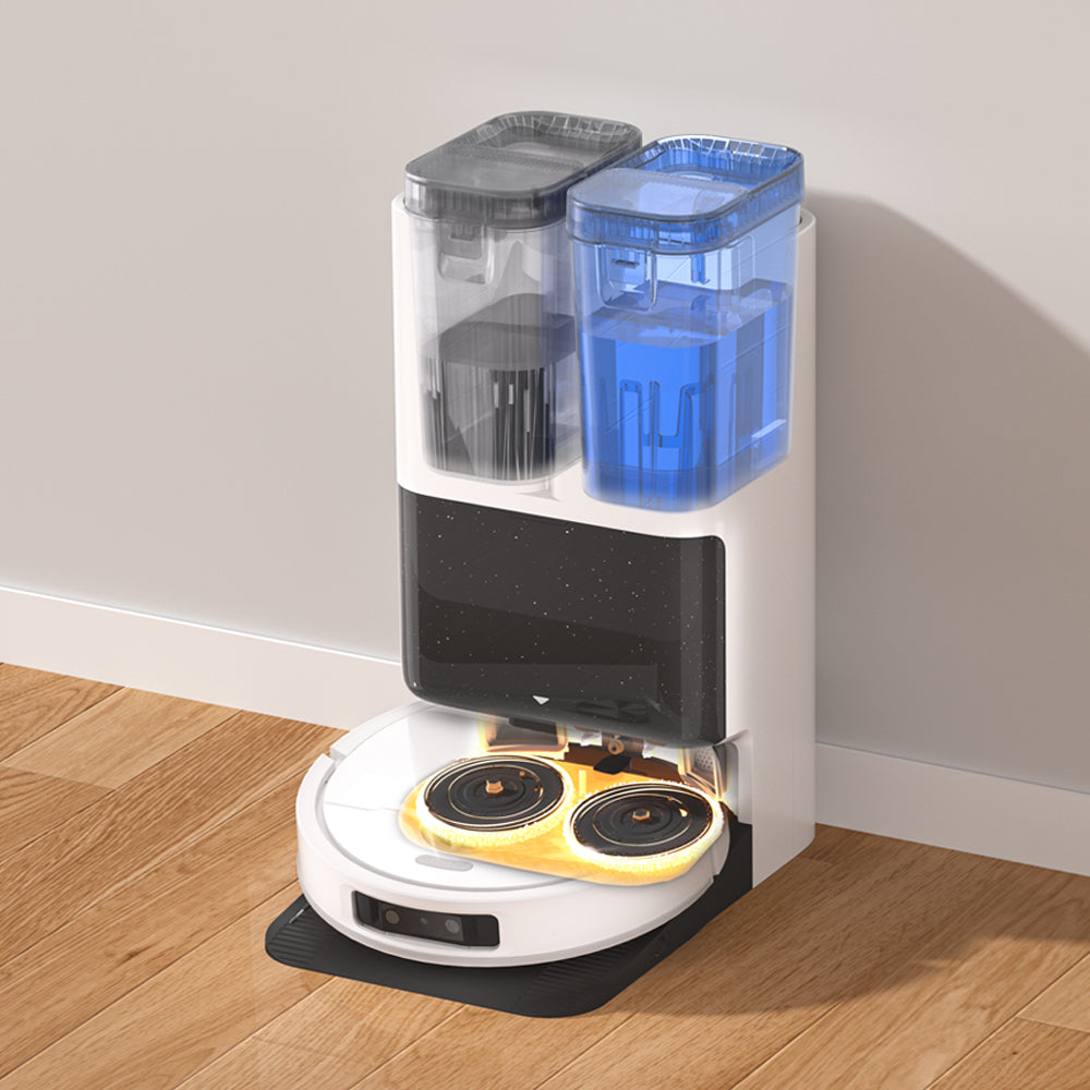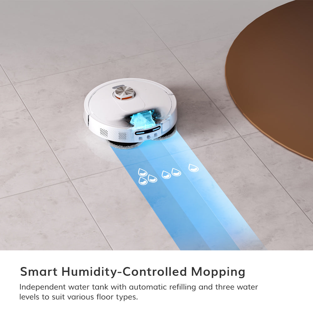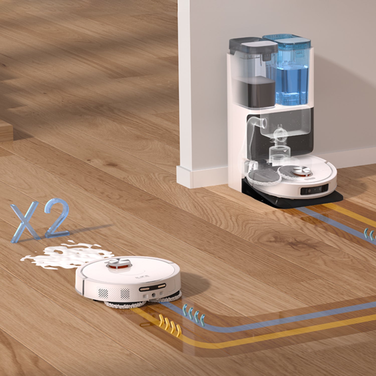For a complete cleaning package, the set also includes a dedicated wet mopping robot, ensuring floors are not only dust-free but also freshly washed and gleaming