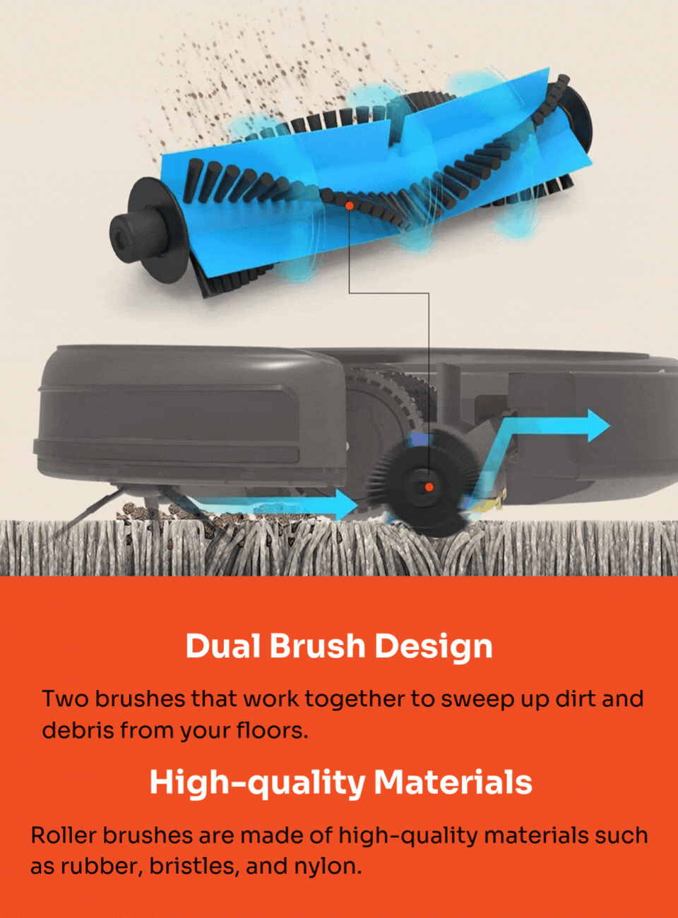 The roller brush is easy to install and replace without any special tools or skills required, and it requires minimal maintenance. By effectively picking up dirt and debris, the roller brush helps to improve the cleaning performance of the robotic vacuum cleaner, ensuring a cleaner and healthier home environment.