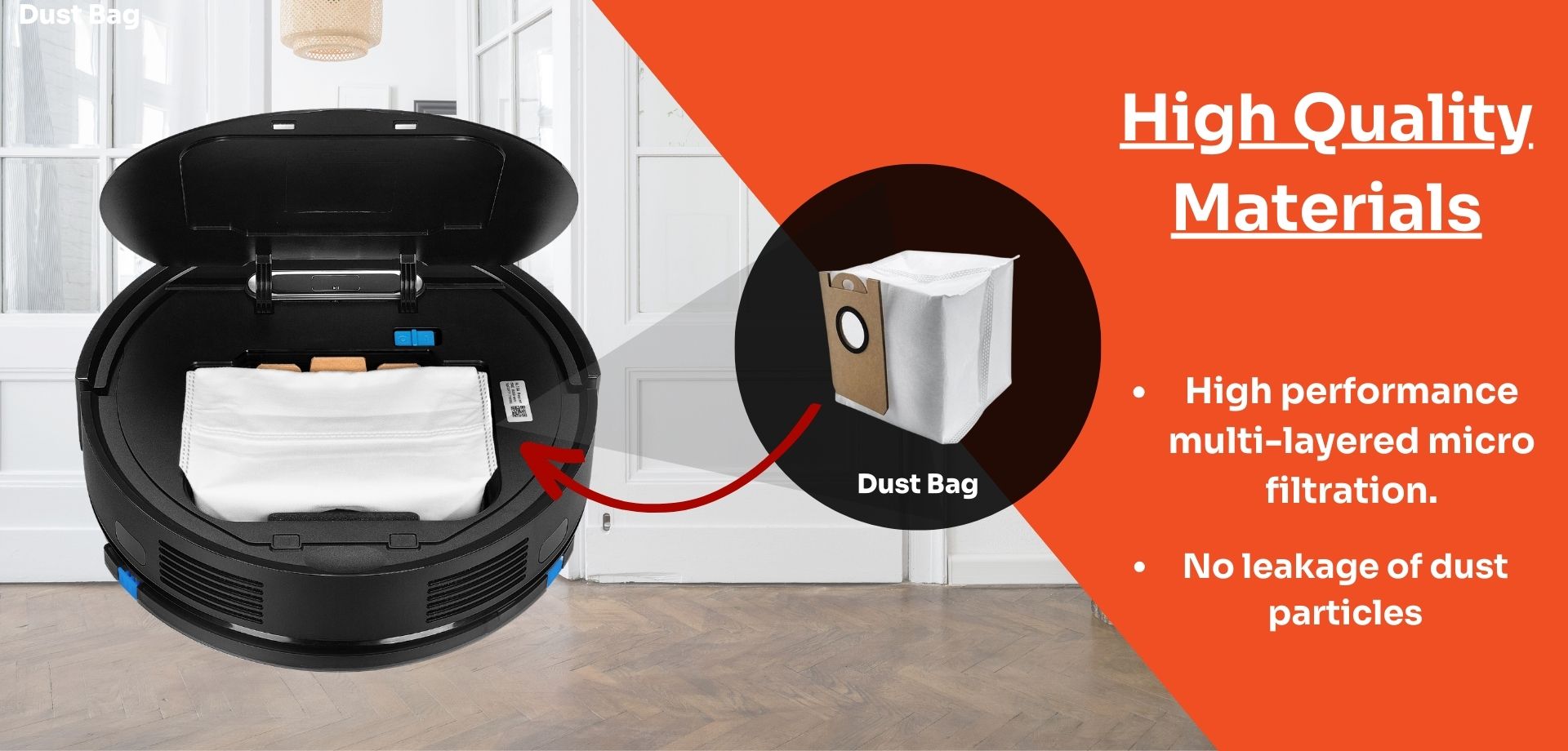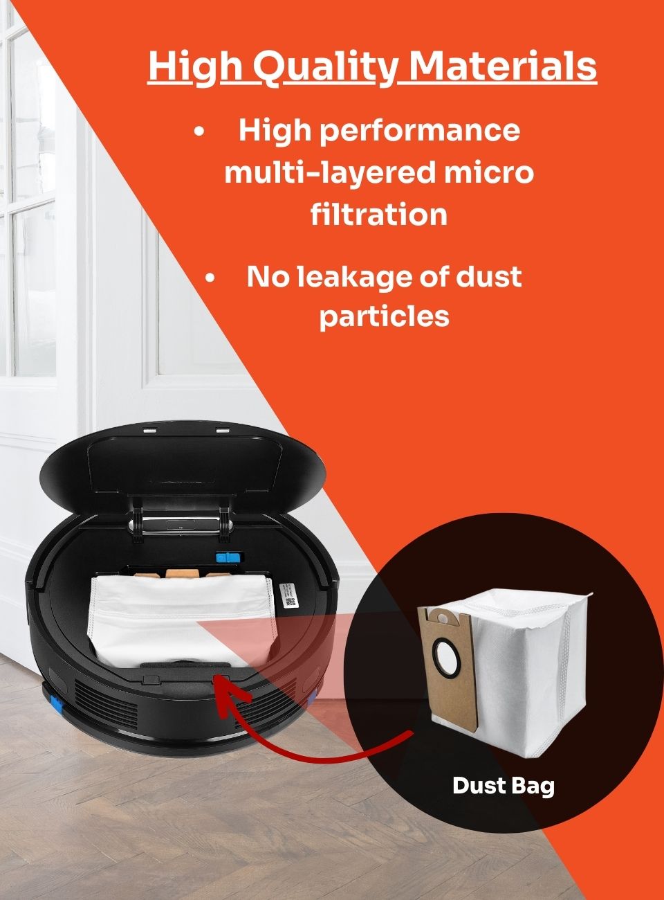 The ILIFE Dust Bag is a practical and efficient solution for effortless cleaning. Designed as use-and-throw bags, they save you valuable time by eliminating the need for frequent emptying and cleaning. Crafted from high-quality materials, these dust bags utilize high-performance multi-layer microfiber filtration, effectively capturing even the smallest dust particles.
