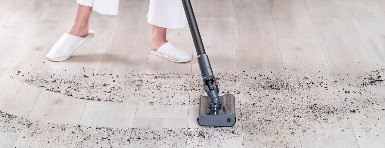 Featuring a double roller design, the H11 offers superior performance compared to traditional single roller vacuums. The two rotating drums at the bottom ensure thorough dust collection, whether you’re moving back and forth or navigating complex areas. Its double universal wheel design allows for seamless movement in all directions, effortlessly tackling hidden dirt and adapting to your cleaning needs. The vacuum's flexible rotation capabilities enable it to clean in tight corners and around obstacles, making it a versatile tool for various cleaning tasks.