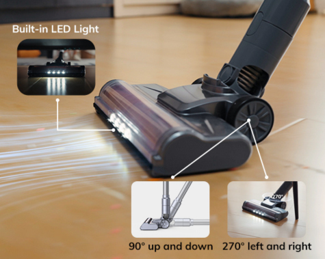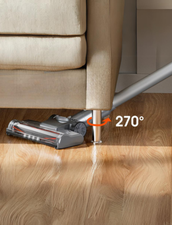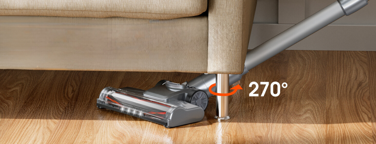 The 270° adjustable floor head cleans around corners and furniture smoothly. Furthermore, it allows the vacuum to stand upright independently.