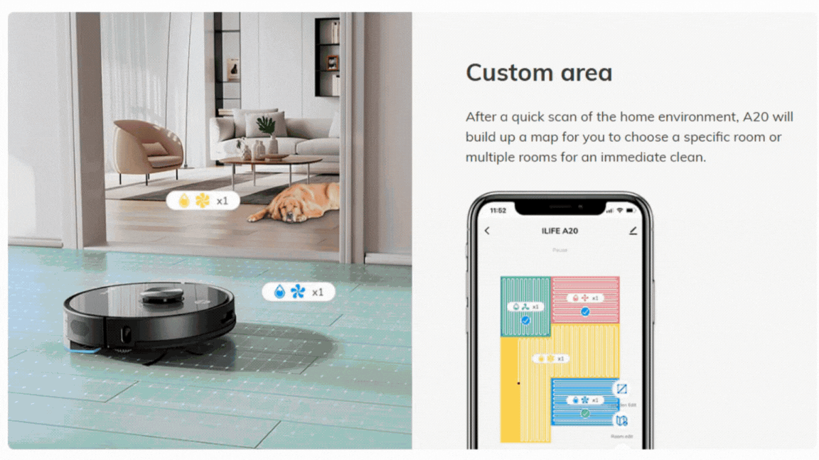ILIFE A20 uses advanced Lidar to scan the home, map rooms in real time, and choose the smartest cleaning path—ensuring efficient, thorough coverage every time.