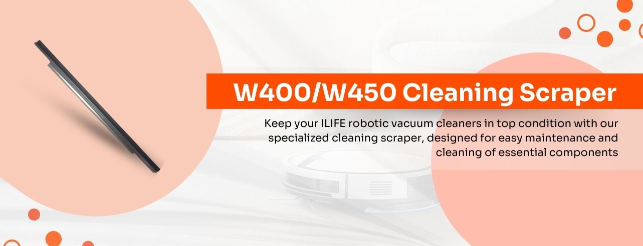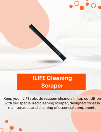 ILIFE cleaning scraper is a tool designed to help remove stubborn debris, dirt, or stuck-on grime from surfaces. It typically has a flat or slightly angled edge that allows you to scrape away particles from floors and other surfaces.