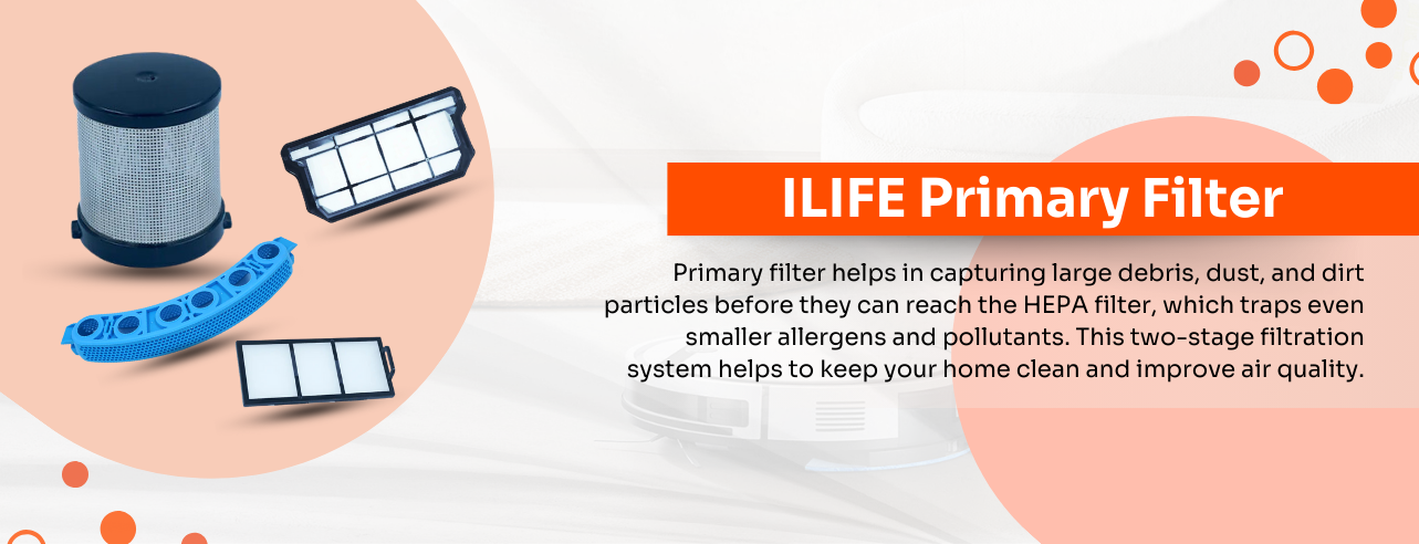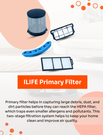 The ILIFE primary filter is a critical component of ILIFE robotic vacuum cleaners, serving as the initial layer of filtration to capture dust, dirt, and debris during the cleaning process.