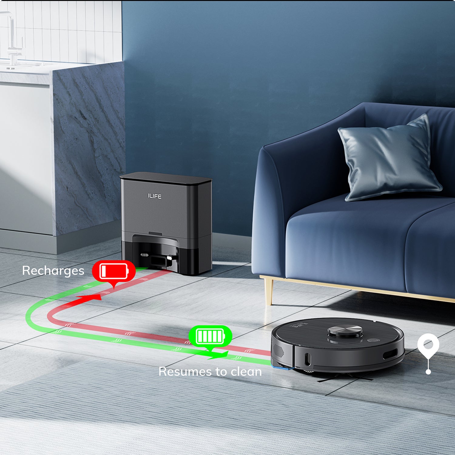 ILIFE T20s is a powerful smart robot vacuum and mop combo featuring advanced LiDAR navigation for efficient multi-floor mapping and thorough cleaning. With 5000Pa suction, smart carpet detection, and a hybrid vacuum-mop system, it tackles all floor types with ease. Its 3.5L self-emptying dustbin allows up to 70 days of hands-free cleaning, while the 5200mAh battery provides up to 260 minutes of runtime. The user-friendly app offers real-time tracking, remote control, scheduling, and voice assistant compatibility, making the T20s a convenient and intelligent cleaning solution for any home.