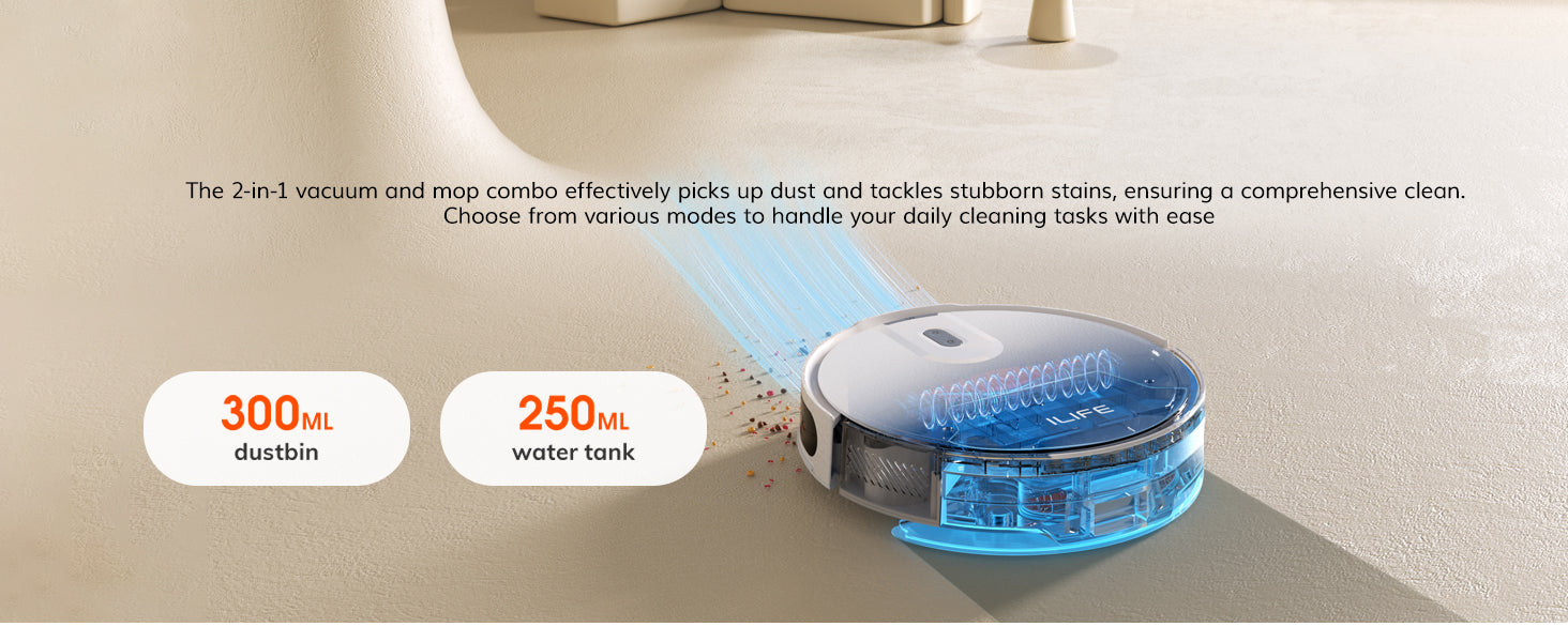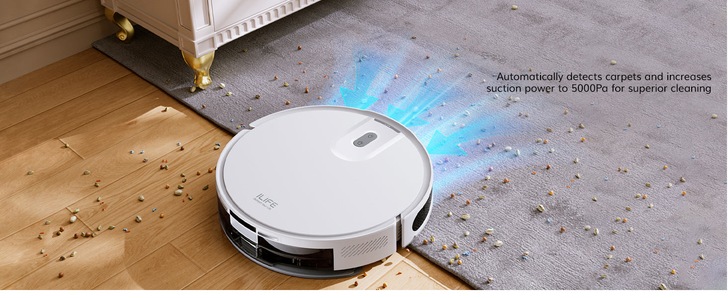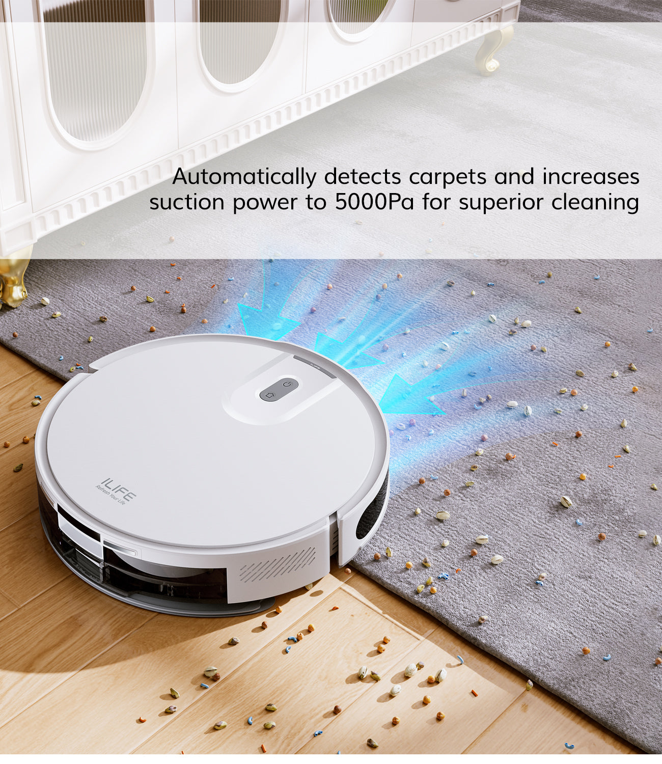 ILIFE V20 robotic vacuum is a versatile and efficient cleaning solution featuring advanced SoF Laser Navigation for precise mapping and thorough cleaning across multiple levels. With a powerful 5000 Pa suction, it easily cleans all types of flooring and includes an auto-carpet boost for deeper cleaning on carpets. Plus, its 2-in-1 vacuum and mop functionality allows it to clean and mop simultaneously, saving time and effort. Additionally, this V20 is controlled via a Smart App, voice assistants, or a remote, offering customisable cleaning schedules, no-go zones, and spot cleaning. With a long-lasting battery, anti-collision sensors, and a slim design for hard-to-reach areas, the V20 provides a safe, efficient, and comprehensive cleaning experience for any home.