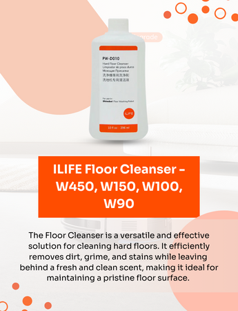 Using the ILIFE Hard Floor Cleaning Solution not only helps maintain the appearance of your floors but also contributes to a healthier living environment by eliminating allergens and bacteria. Easy to use, this cleaning solution allows you to enjoy a hassle-free cleaning experience, so you can focus on what matters most while your robotic vacuum takes care of the hard work.