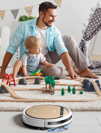 The ILIFE V5s Pro features a sleek, modern design that fits seamlessly into any home decor. Its low-profile structure allows it to easily navigate under furniture and reach tight spaces, ensuring a thorough clean. With its compact size and sophisticated color palette, this robotic vacuum not only performs well but also enhances your living space.