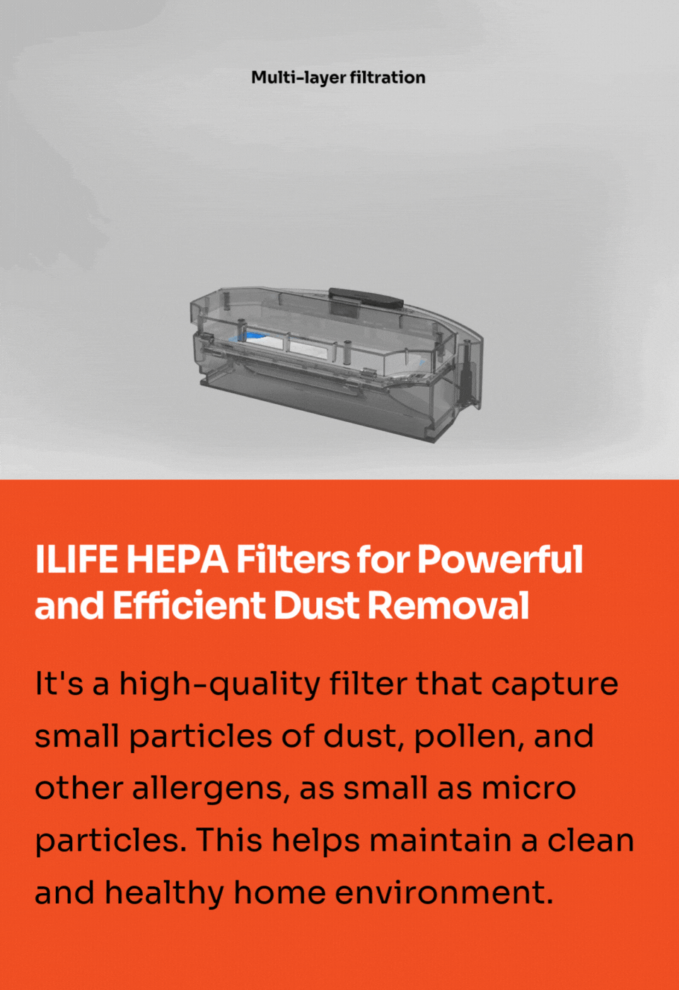 The HEPA filter is an essential component in maintaining clean indoor air and keeping robotic vacuum cleaner running efficiently.
