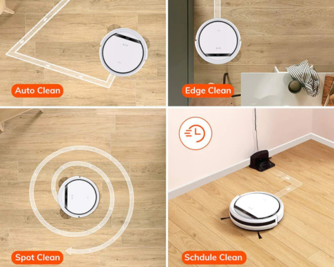 Auto clean by pressing the mechanical button on the robot or choose from 3 cleaning modes with the remote, auto mode, edge mode, & space mode.