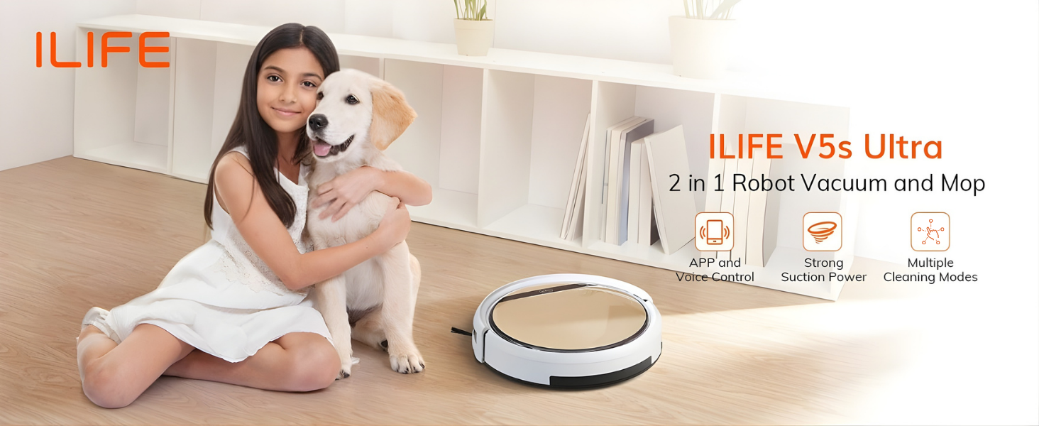 ILIFE V5s Ultra is a smart robot vacuum and mop combo built for effortless everyday cleaning. Equipped with powerful suction, a slim body for under-furniture access, and intelligent app & voice control, it efficiently removes dust, pet hair, and light spills from hard floors. Ideal for busy homes looking for reliable, hands-free cleaning.