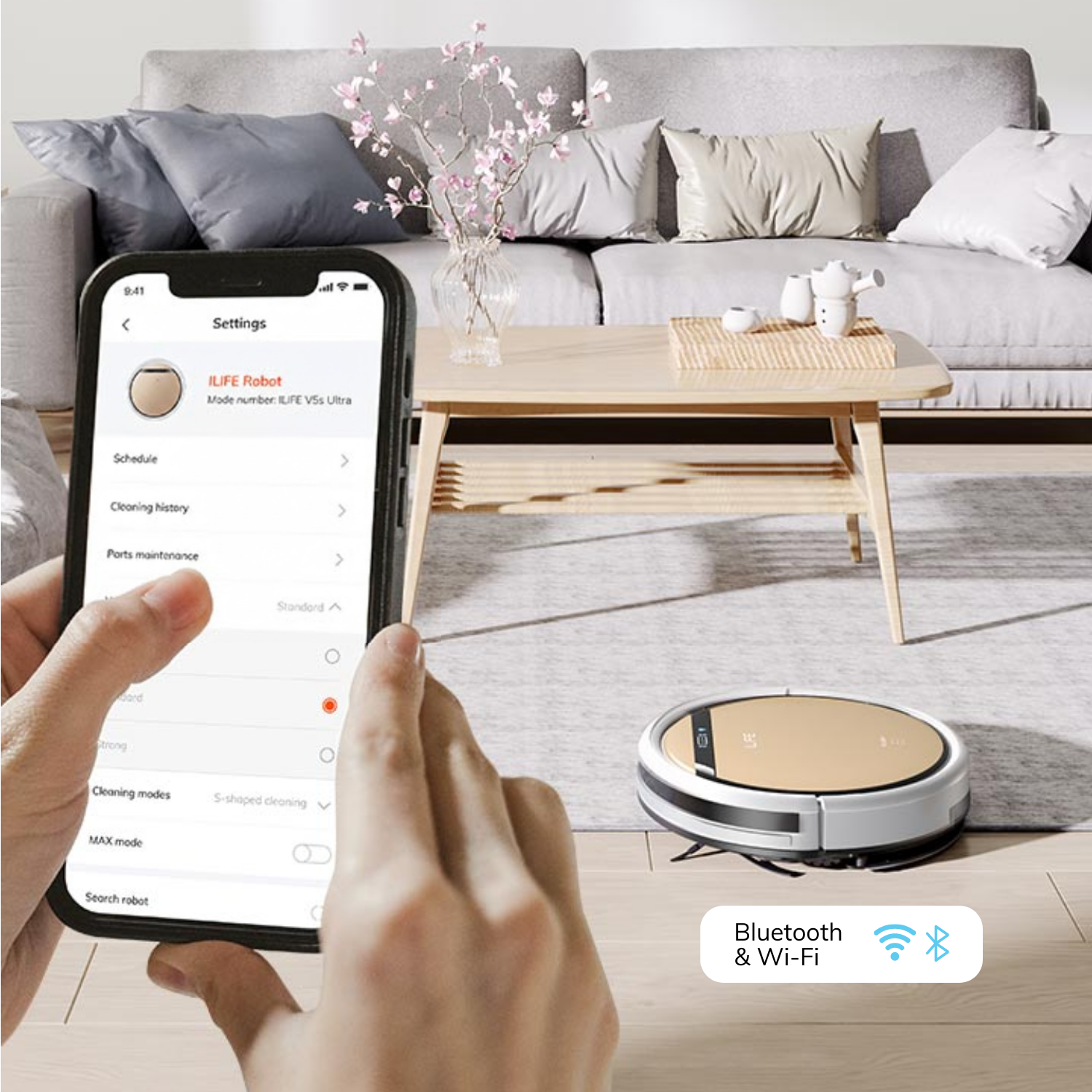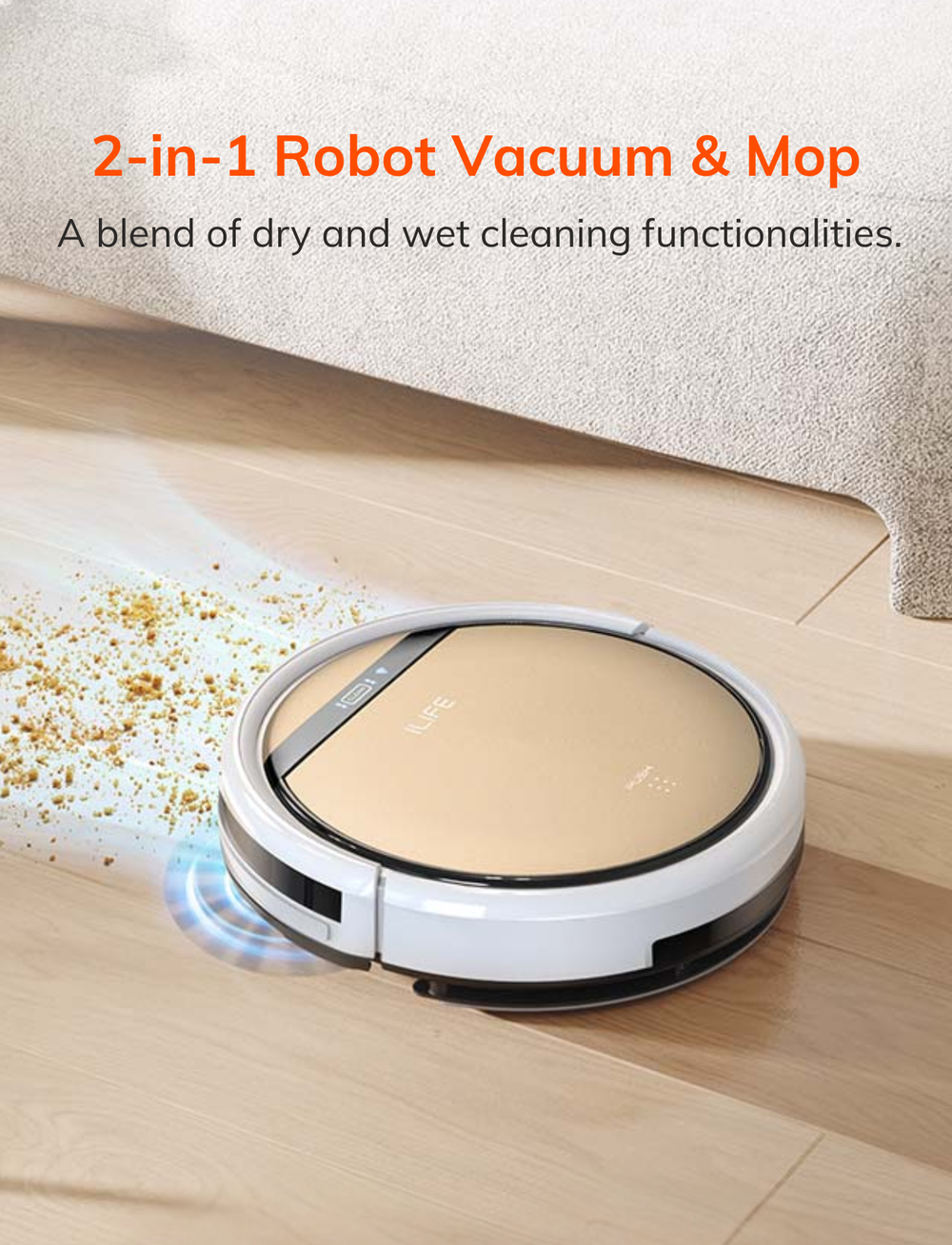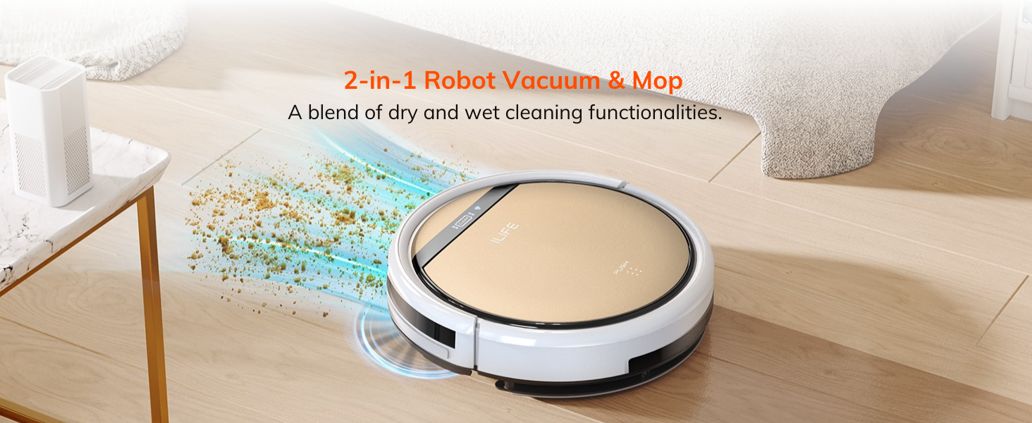 Upgrade your daily cleaning with ILIFE V5s Ultra, a smart robot vacuum and mop designed for effortless home maintenance. Built with powerful suction and a dual vacuum-and-mop system, it efficiently removes dust, pet hair, and light spills from hard floors. Its slim, low-profile design allows easy access under furniture and tight spaces, ensuring thorough coverage throughout your home. With intelligent cleaning modes and automatic scheduling via the companion app, V5s Ultra adapts to your routine with ease. The long-lasting battery supports extended cleaning sessions, while smart navigation ensures smooth movement across different floor types. Simple app and voice control compatibility make everyday cleaning more convenient and hands-free than ever.